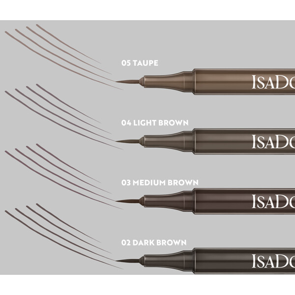 IsaDora Brow Fine Liner is an eyebrow pencil with a micro-thin tip designed to shape, define, and fill in eyebrows.