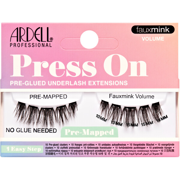 Achieve perfect lashes in under a minute with Ardell's Pre-Mapped Press-On Extensions. The pre-glued lash band provides secure hold all day, without glue, mess, or hassle.