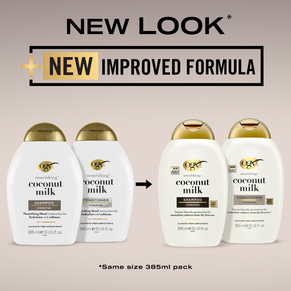 OGX Coconut Milk Conditioner has a wonderfully creamy combination of nourishing coconut milk, strengthening egg proteins, and moisturizing coconut oil. It makes the hair soft and shiny with a gentle coconut scent.