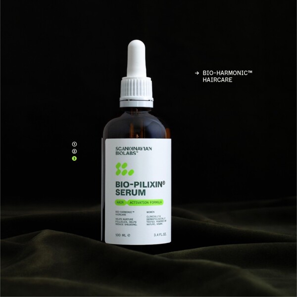 Bio-Pilixin® Serum is developed and manufactured in Denmark and has been formulated by experts to help reduce hair loss and support the growth of new hair. This is achieved using ingredients found in nature and synthesised by science with plant stem cell technology.