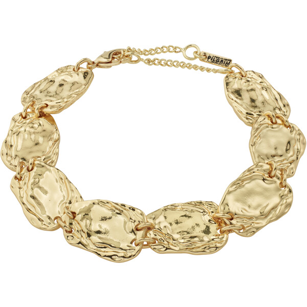 The gold-plated SHIFT bracelet from Pilgrim is a must-have for those who love unique accessories with character. The flat, organically shaped coins have a raw, textured surface that gives the jewellery a cool handcrafted feel. A perfect combination of boho elegance and classic style.