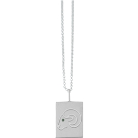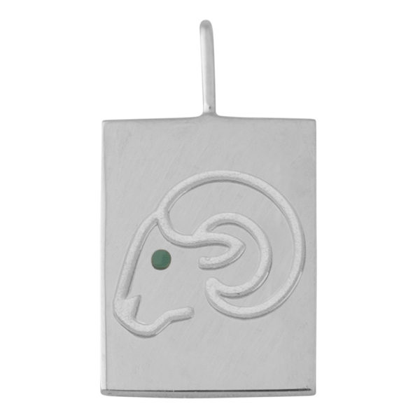 Zodiac by Design Letters Aries is a pendant designed for those born under the sign of Aries. The pendant is available in 925 sterling silver and 18K gold-plated silver. The front of the pendant features an image of the ram, and the back is engraved with the word "COURAGE," symbolizing Aries.
