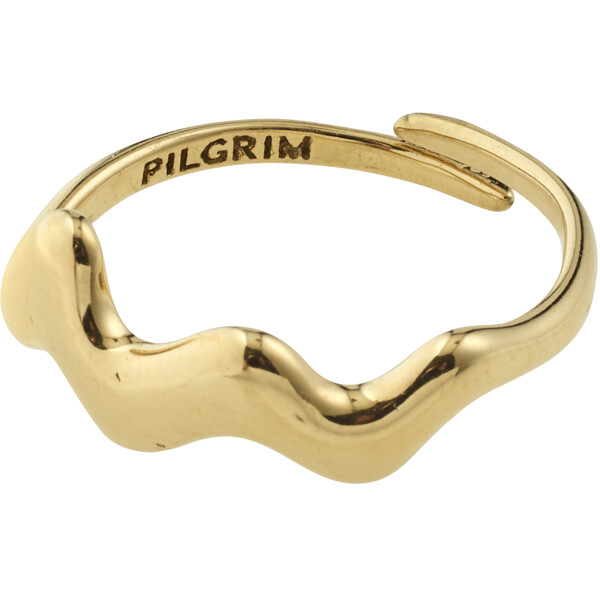 The LARKIN ring from Pilgrim is a dreamy mix of organic shapes and minimalist coolness. The adjustable ring features a flowing, wavy design that gives a light and airy expression – perfect for a stacked ring game or as a sleek statement piece. The gold-plated surface beautifully reflects the light and adds a touch of subtle luxury.