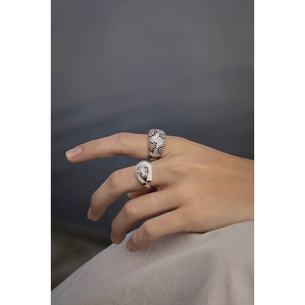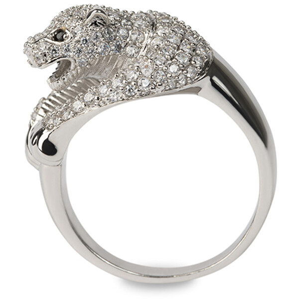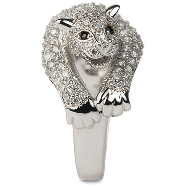 Silver-plated leopard ring filled with sparkling hand-set Cubic Zirconia stones.